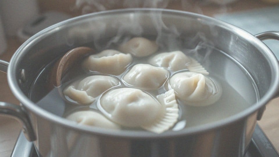 - w garnku doprowadzamy do wrzenia wodę lub bulion,